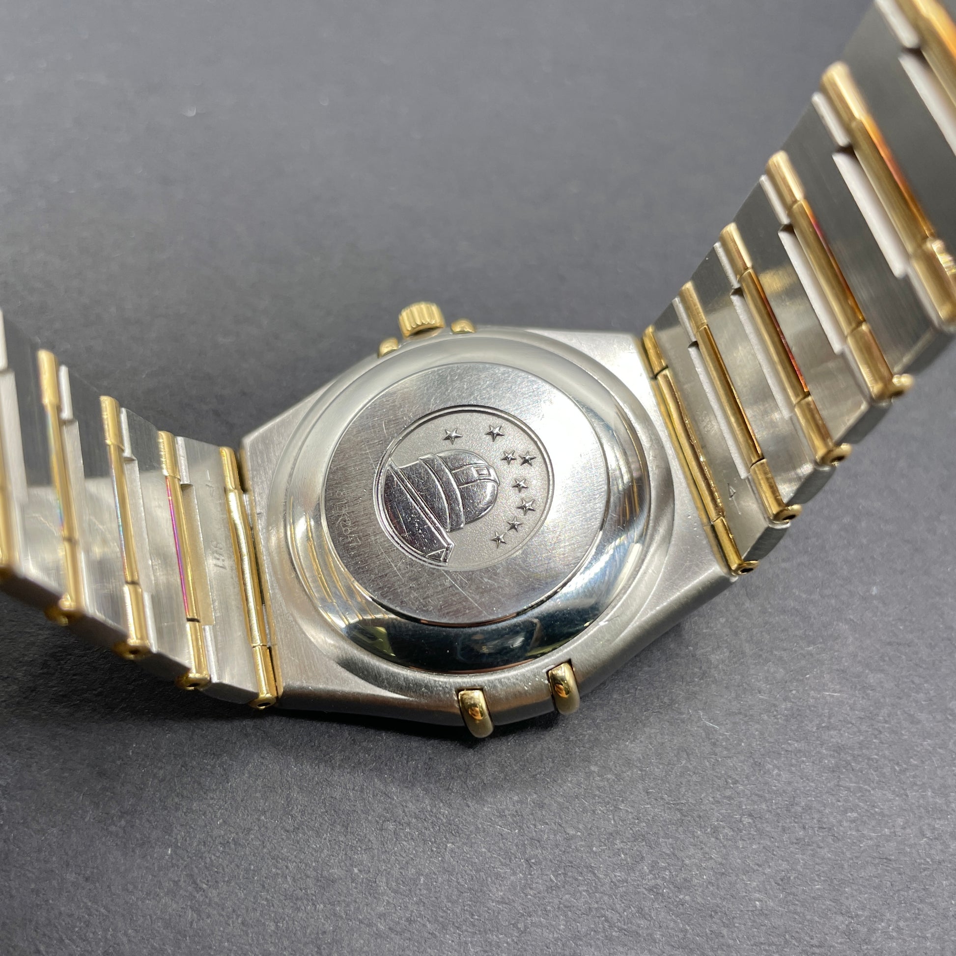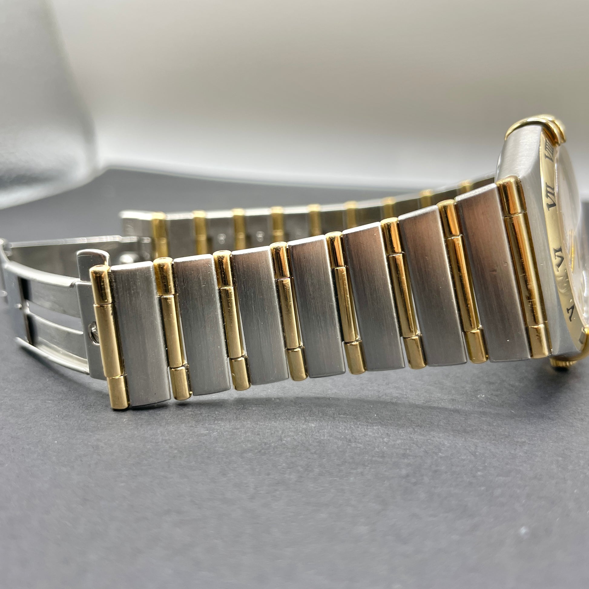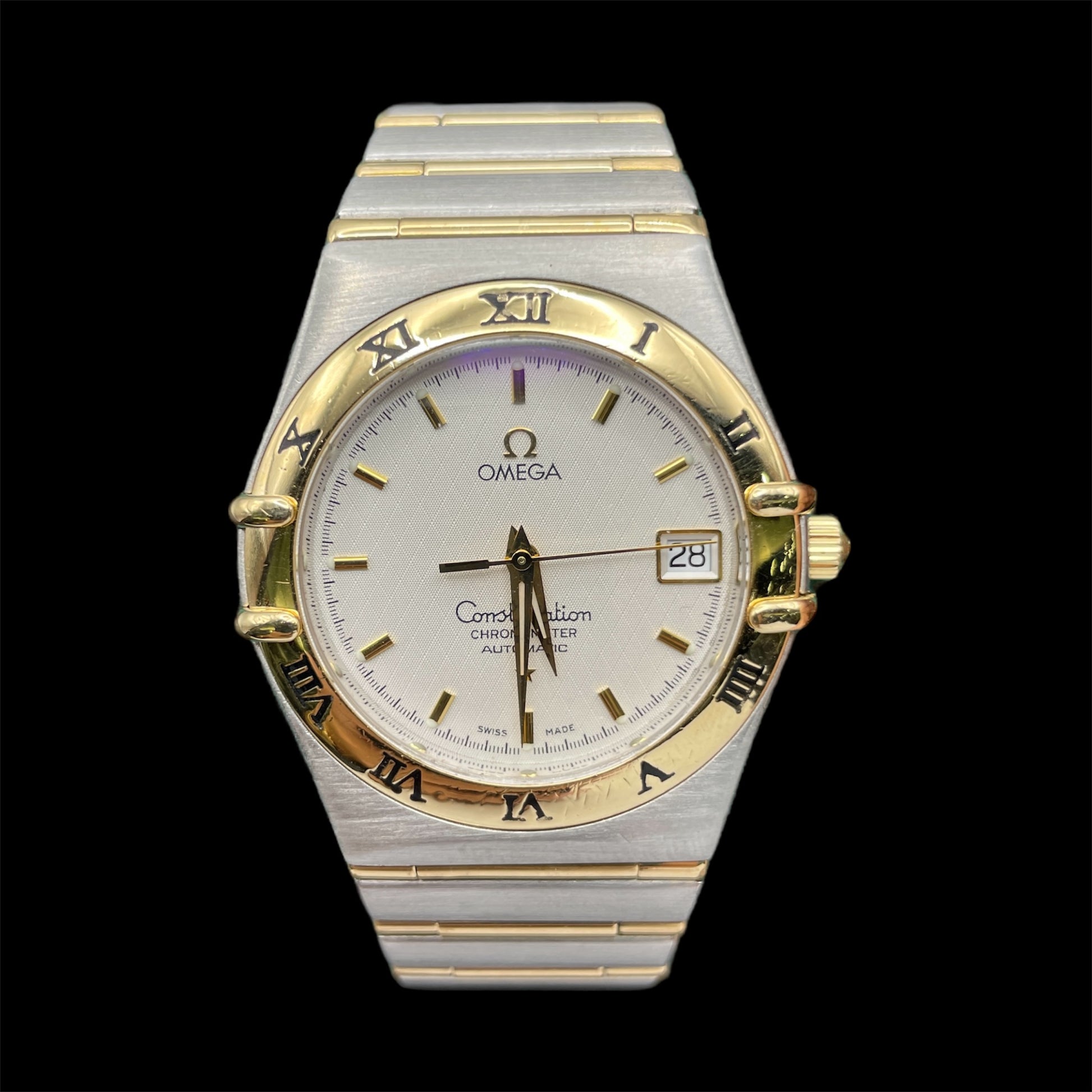 Description: Gold roman numeral bezel and silver dial with index hour markers