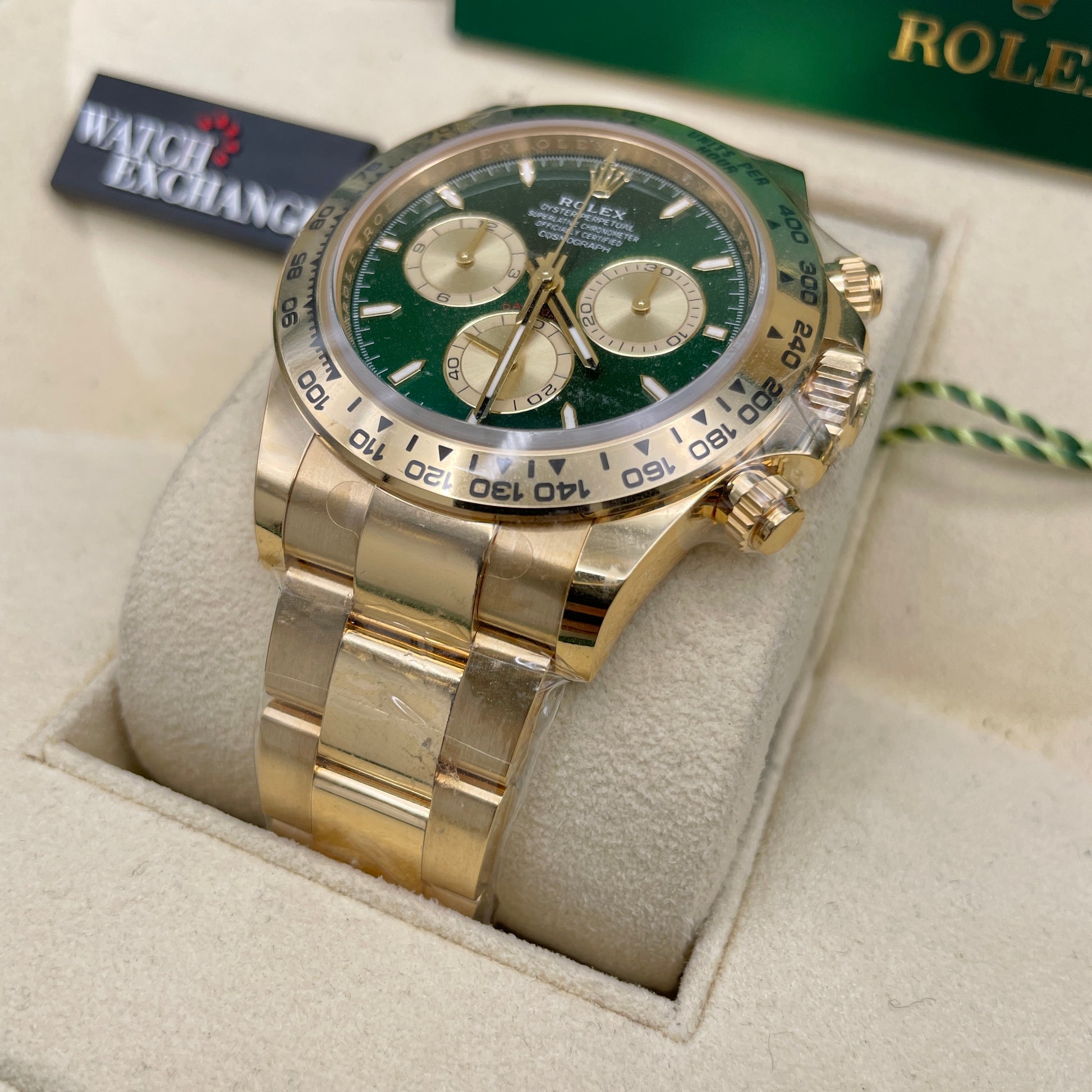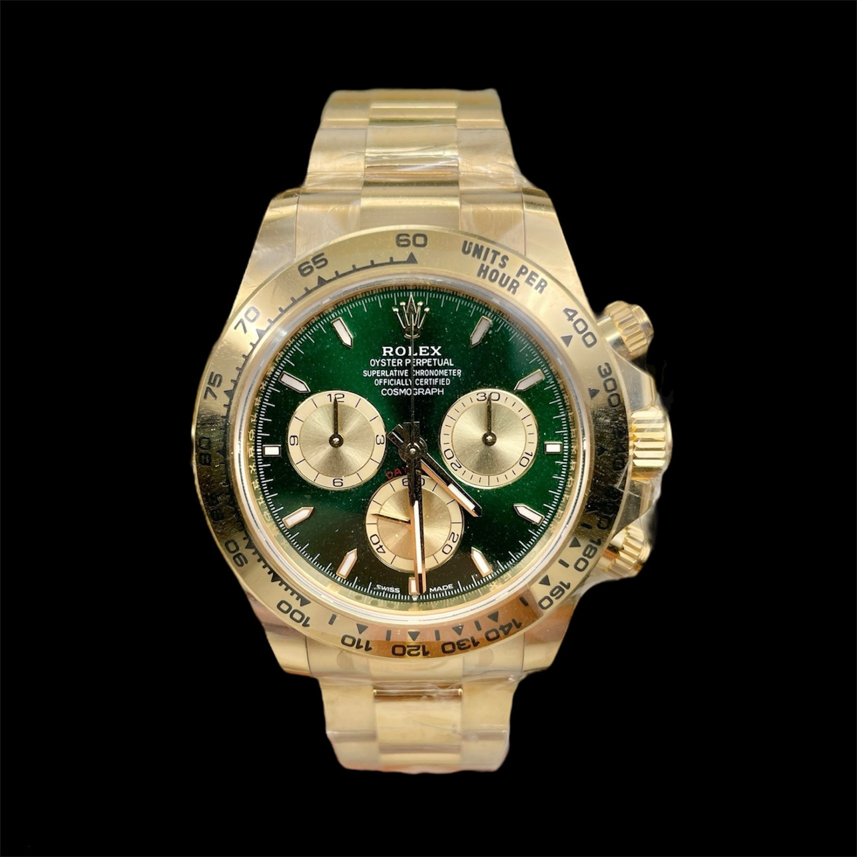Description: Gold tachymetric scale engraved bezel and green/gold dial with luminescent hour markers