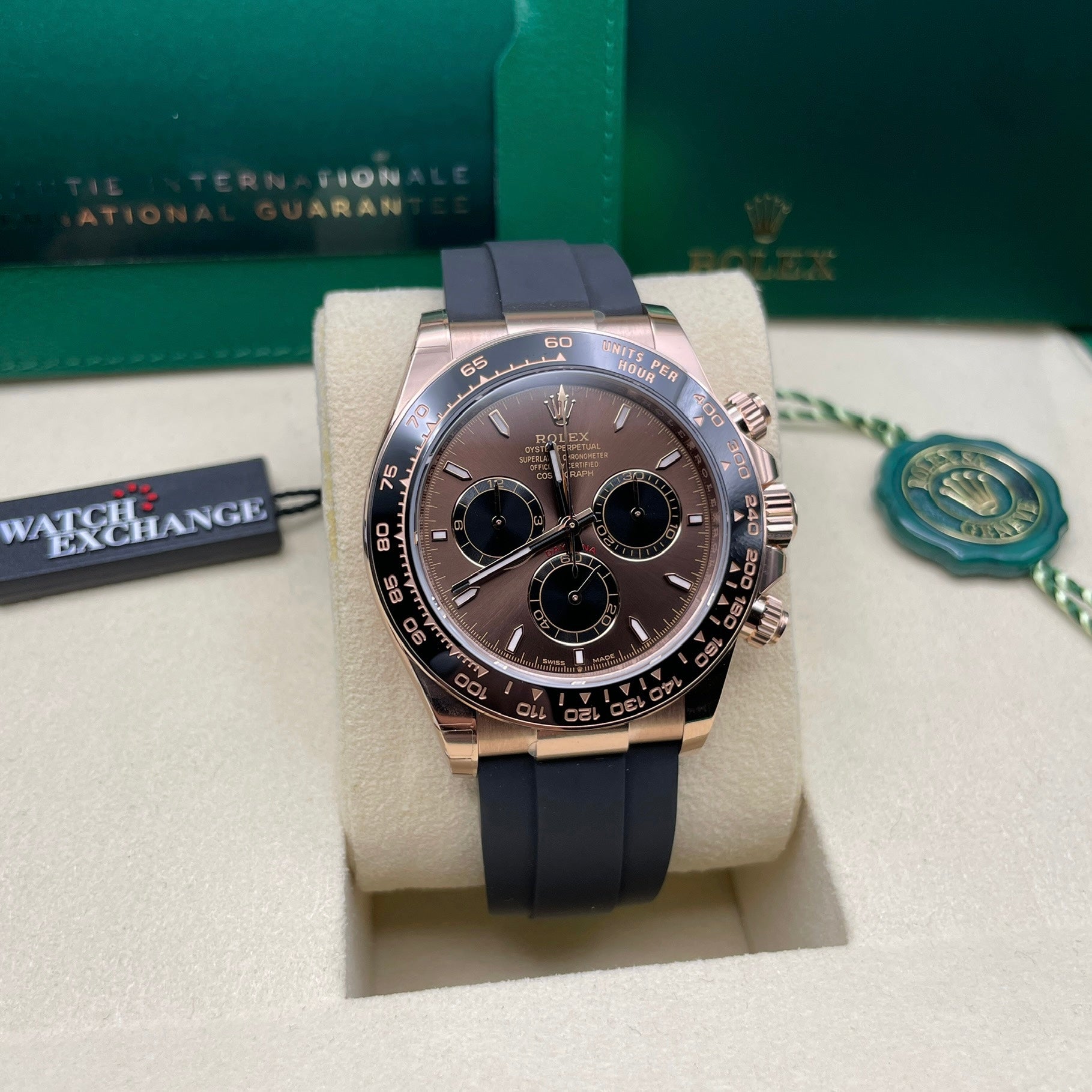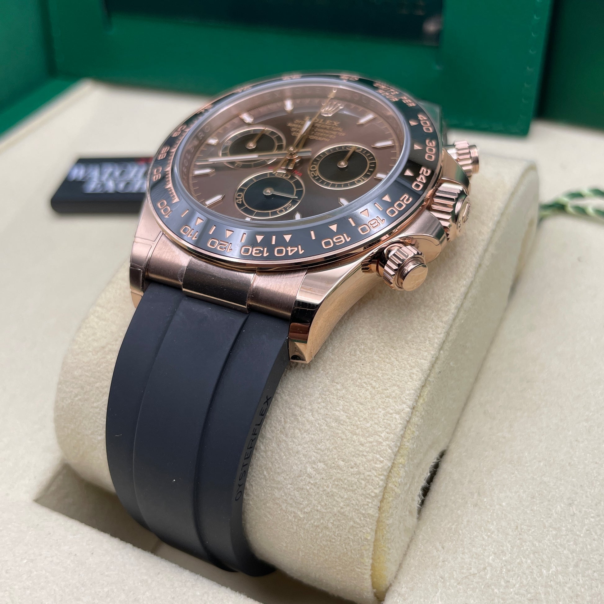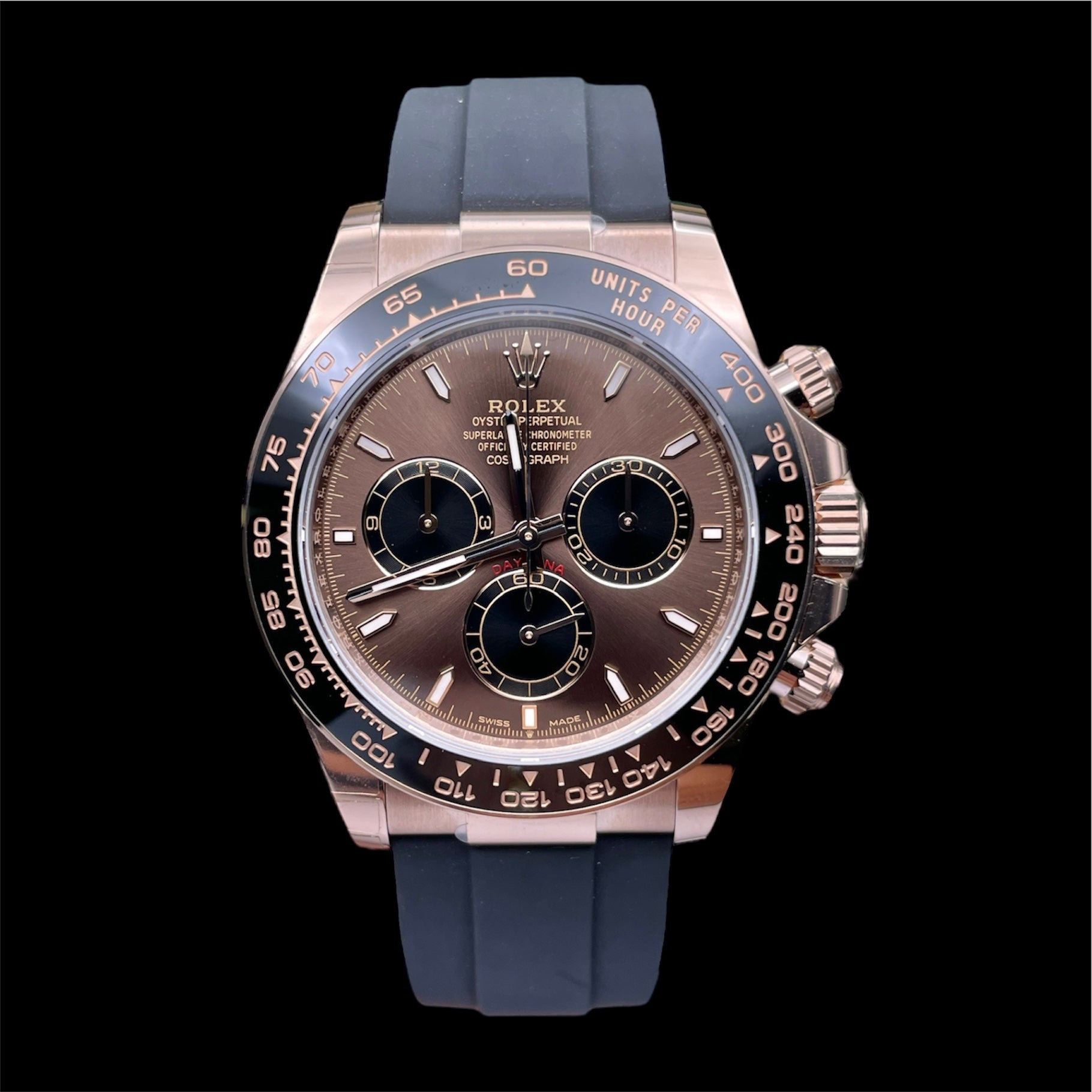 Description: Oysterflex bracelet, black ceramic tachymetric scale engraved bezel and chocolate dial