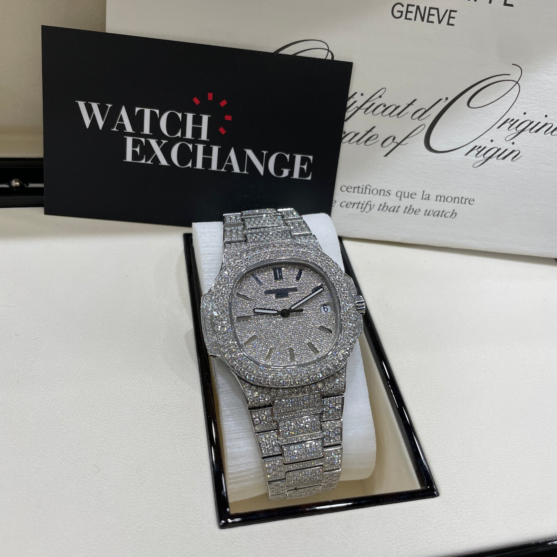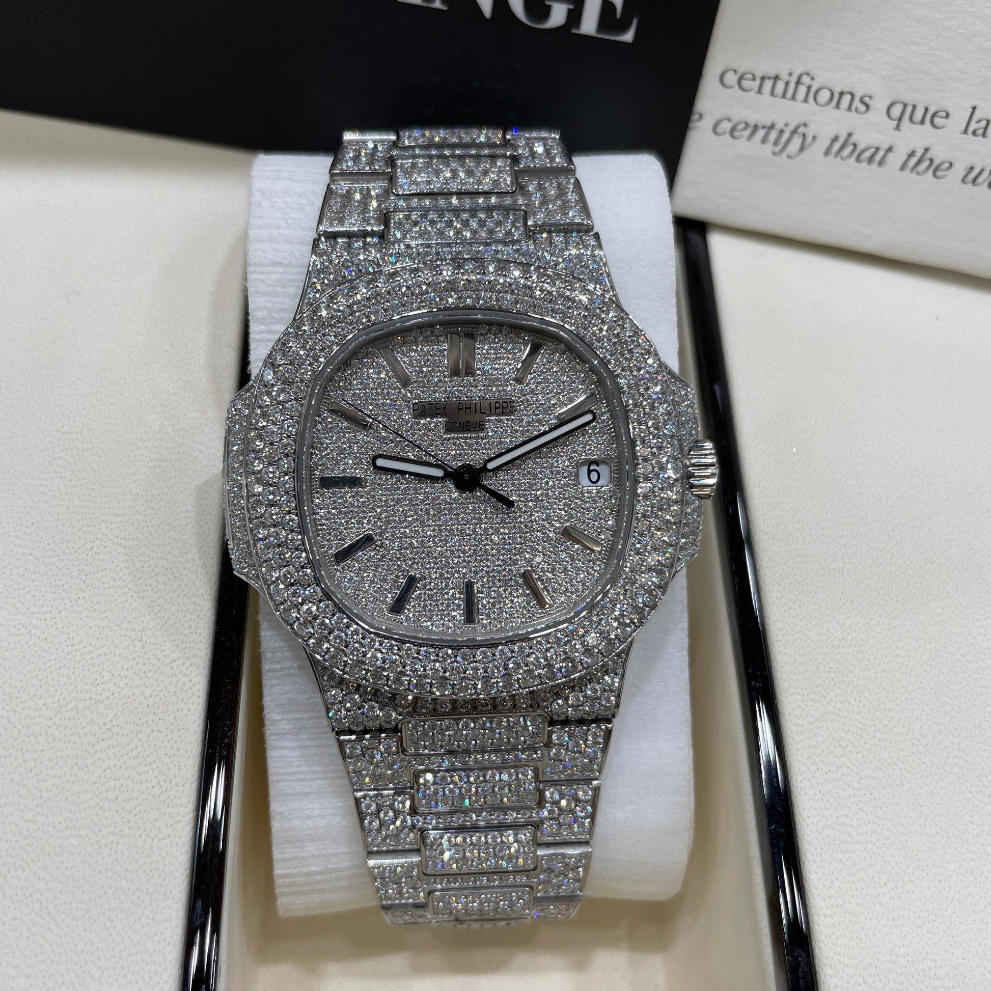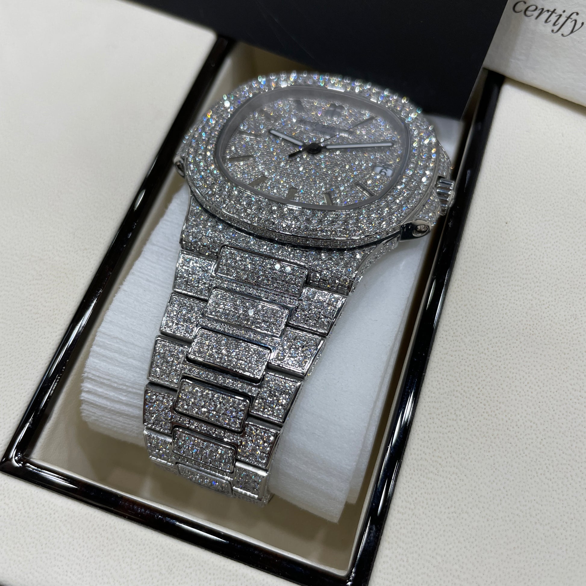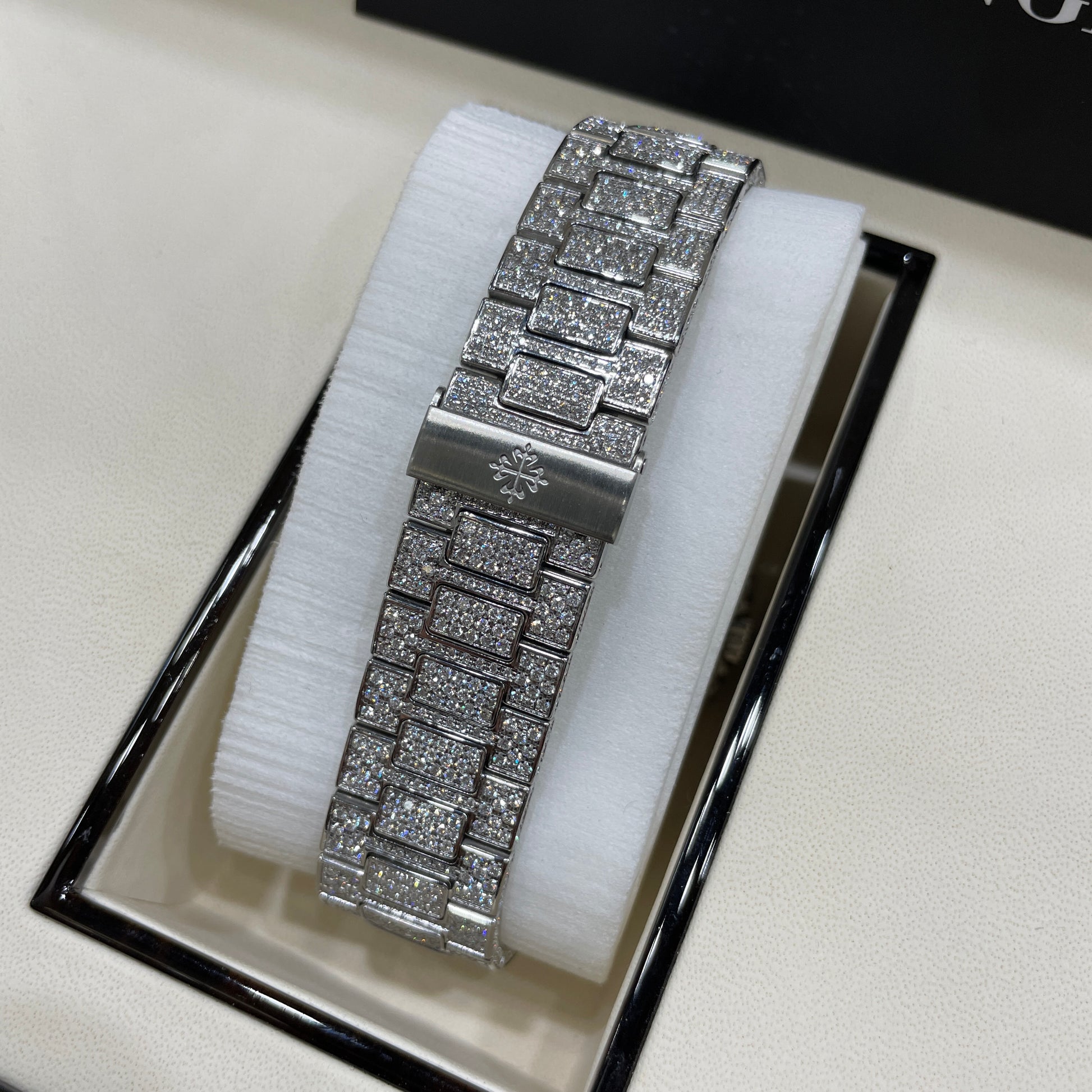 Description: Aftermarket set diamonds on the case, bracelet and dial with index hour markers