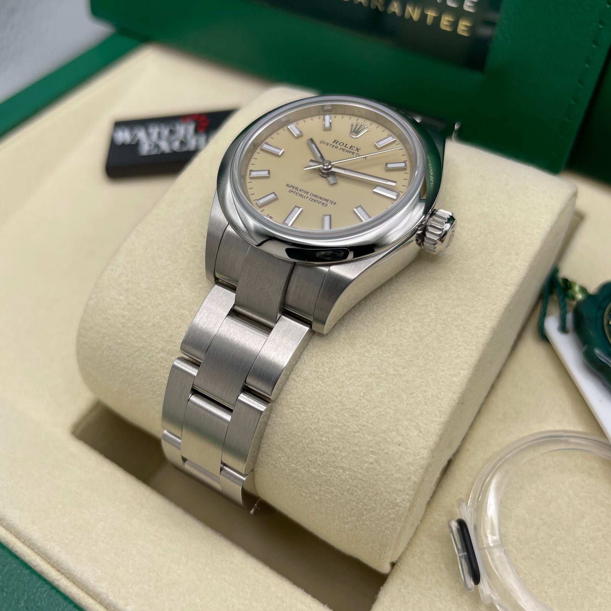 Description: Smooth bezel and Beige dial with luminescent hour markers